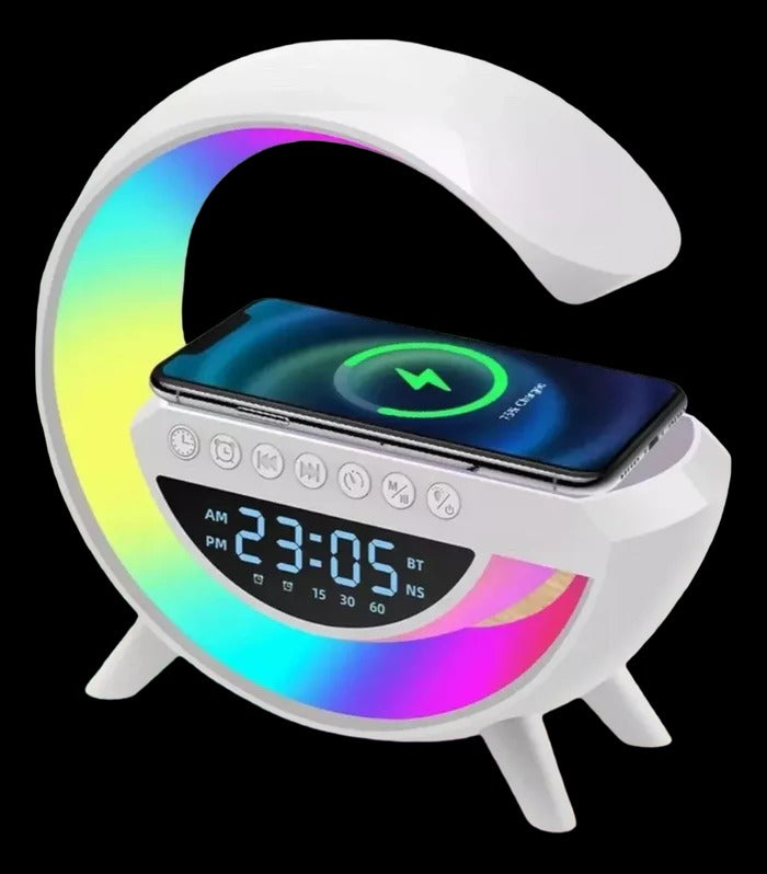 Luminária Multifuncional com Caixa de Som, Carregador e Despertador