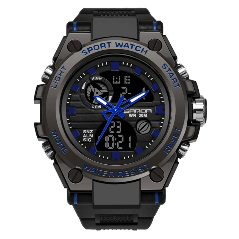 A estrutura do relógio é produzida com um plástico de alta resistência, acompanhada por uma pulseira de poliuretano, fivela reforçada e um vidro temperado com proteção contra abrasões, garantindo máxima durabilidade no uso diário.